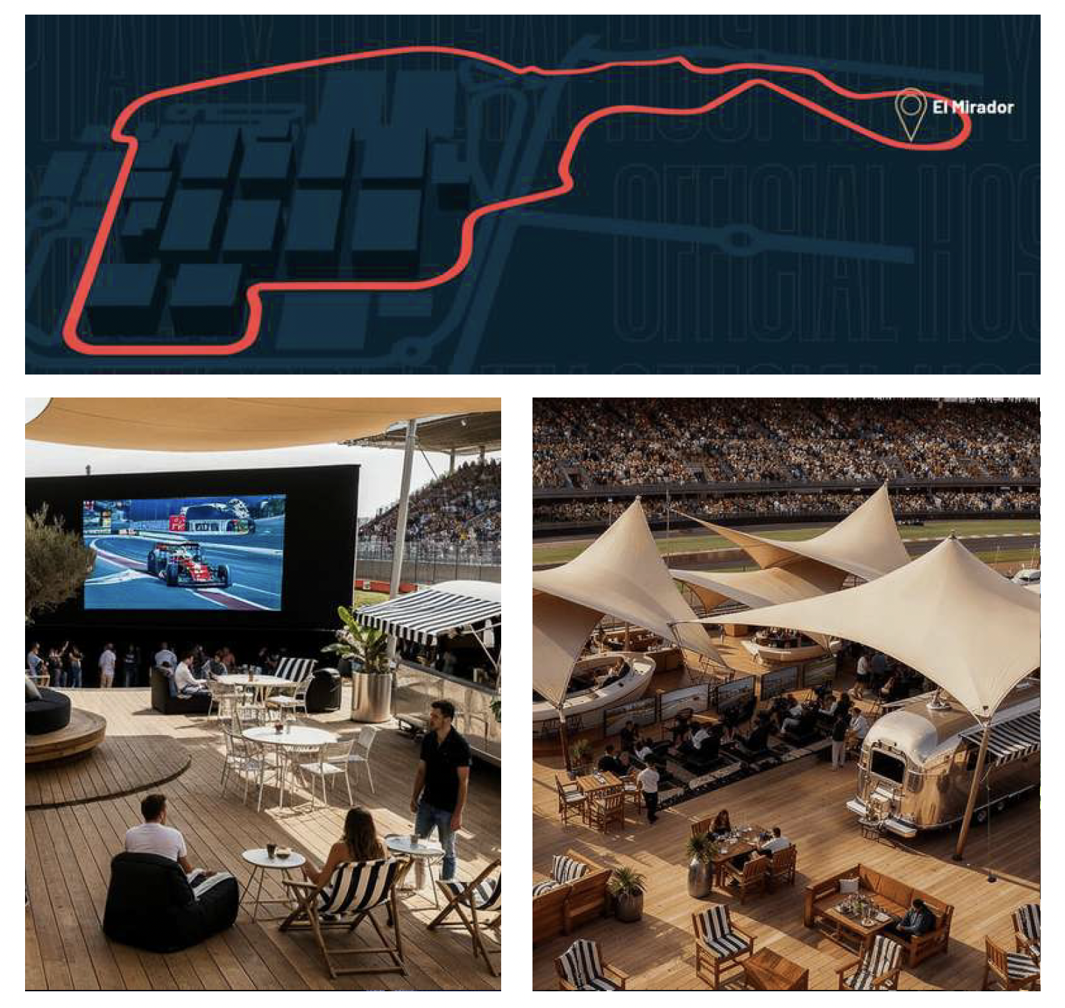 El Mirador: Beach club and F1 in one. DJs, cocktails, and food pop-ups from Madrid’s trendiest restaurants in a relaxed, social setting. From €7,700 (2 days).